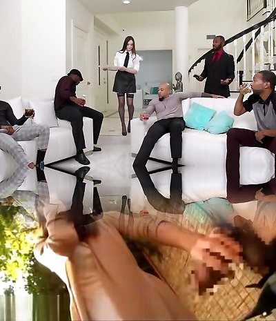 She surrounded by a few black penises and screams with joy when they penetrate all her holes at the same time
