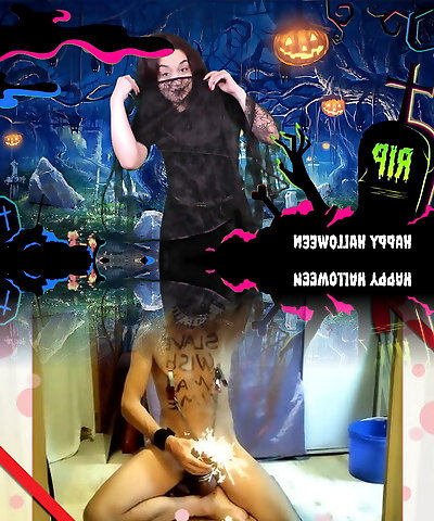 Horny Milf Witch In Black Latex Devours Knob on Halloween Night