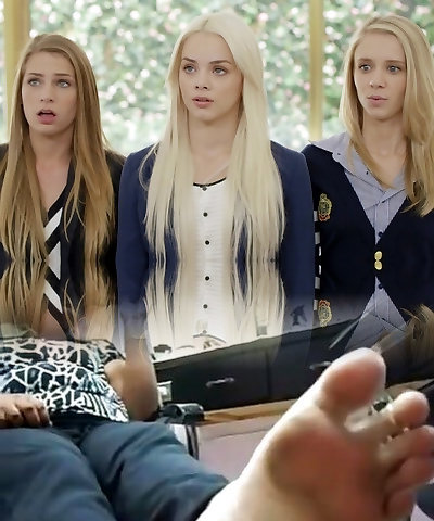 What an amazing threesome lesbian action with three stunning sweeties and a big milky strap on