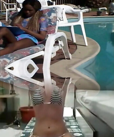 Absolutely gorgeous black teen takes a white schlong by the pool