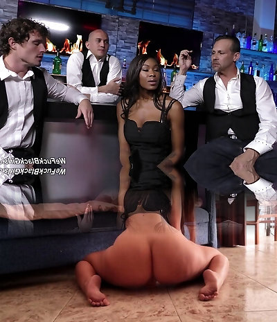 Guys at the bar gangbang a sexy black girl