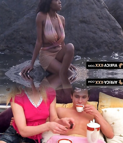Black young man with a unreal gigantic sausage feeds busty babe