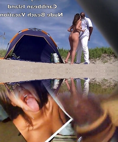 Voyeur cuck watches mature wife masturbating big ebony cock on nude beach
