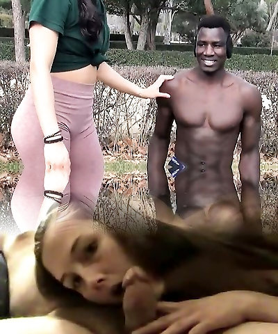 Babe gives blowjob and enjoys black cock fucking shaved cooter