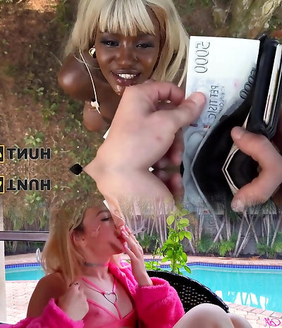 Hourglass Dark-hued fucks with stranger for currency in front of cuckold - POV