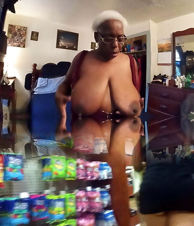 Obese mommy with big natural tits in dark-hued pantyhose with sex toy