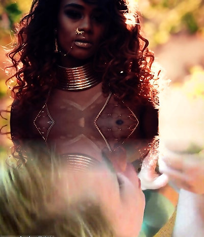 Wonderful ebony cowgirl with a pierced pussy luving a spicy multiracial fuck outdoors