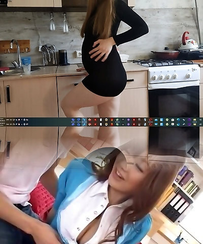 I'm your step mom! Please don't cum in me! step son caught eyes covered step mom alone