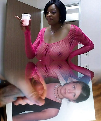 A black hottie in splendid stockings loves to get hot cum on her juicy pussy.