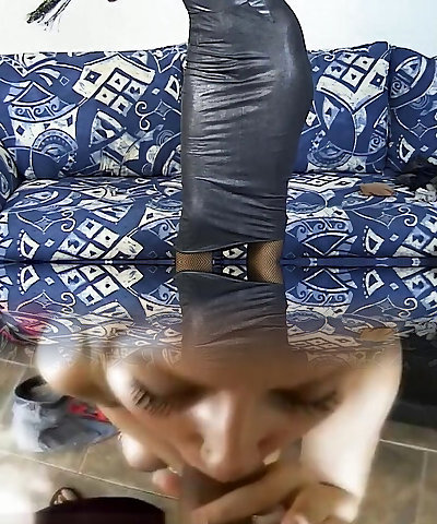 wife in black gargling husbands cock