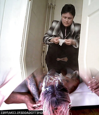 Ugly ebony blondie gets her stinky anus polished in mish style tough