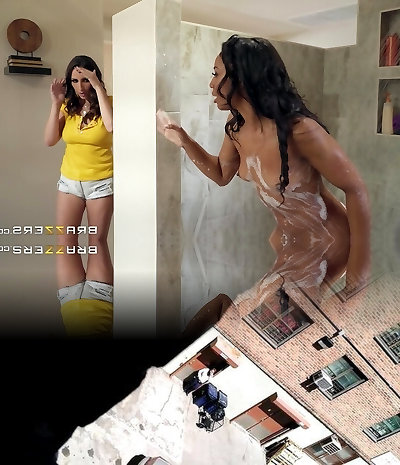 Dark-hued stepbrother is spying on black sister-in-law Jenna Foxx in the shower