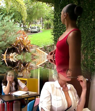 Ebony g/g Lotus Lain gives perfect tongue job to sexy red head Violet Monroe