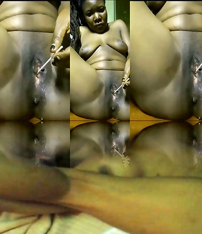African Lesbian, Solo, Pissing, Masturbating, Stimulating Dildo, Butt Plug in Ass Hole, Large Ass Ass, Big Natural Tits